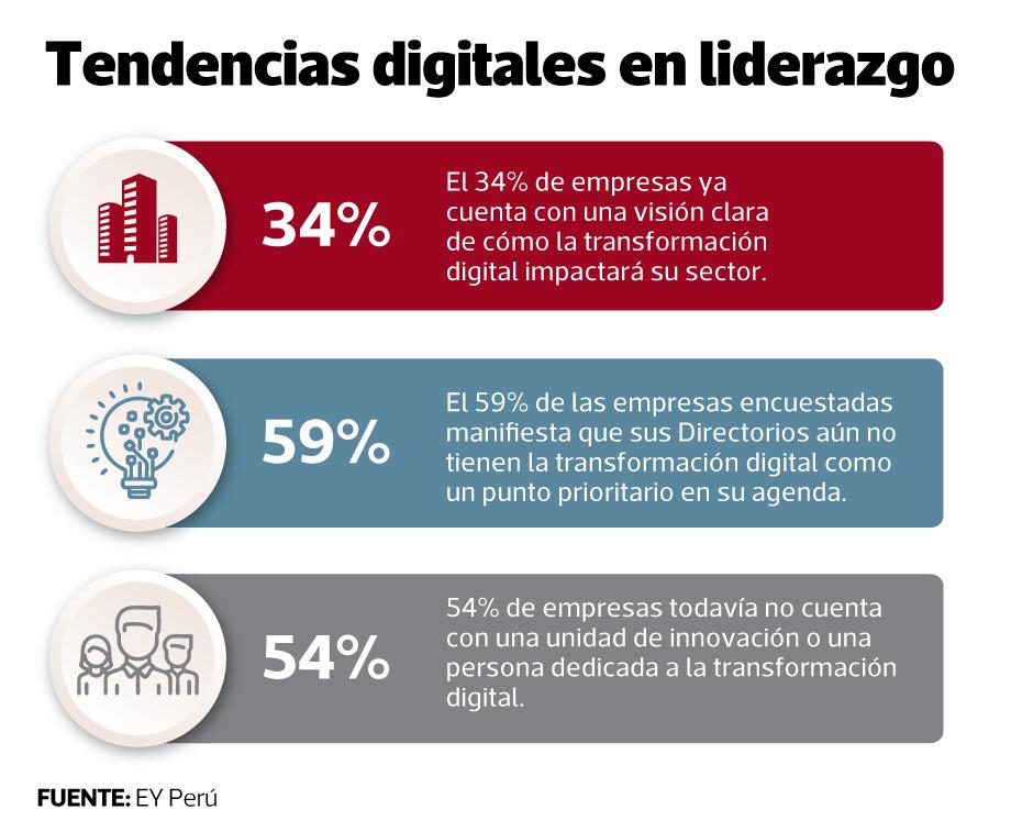 Así, según datos de EY el 63% de las empresas peruanas ya se encuentran encaminadas en su proceso de transformación digital; y el 27% se encuentra en una etapa incipiente.