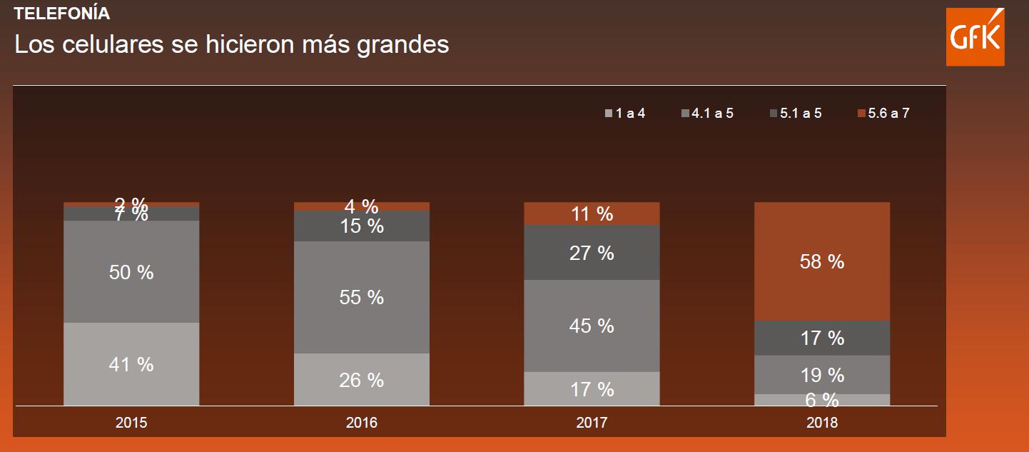 Así, las Phablets han tenido su mejor desempeño en los últimos años. Según estadística de GfK, la venta de phablets representaba el 2% de unidades vendidas en el 2015. Sin embargo, la demanda evolucionó y en el 2018 las phablets representarán el 58% de las unidades vendidas.