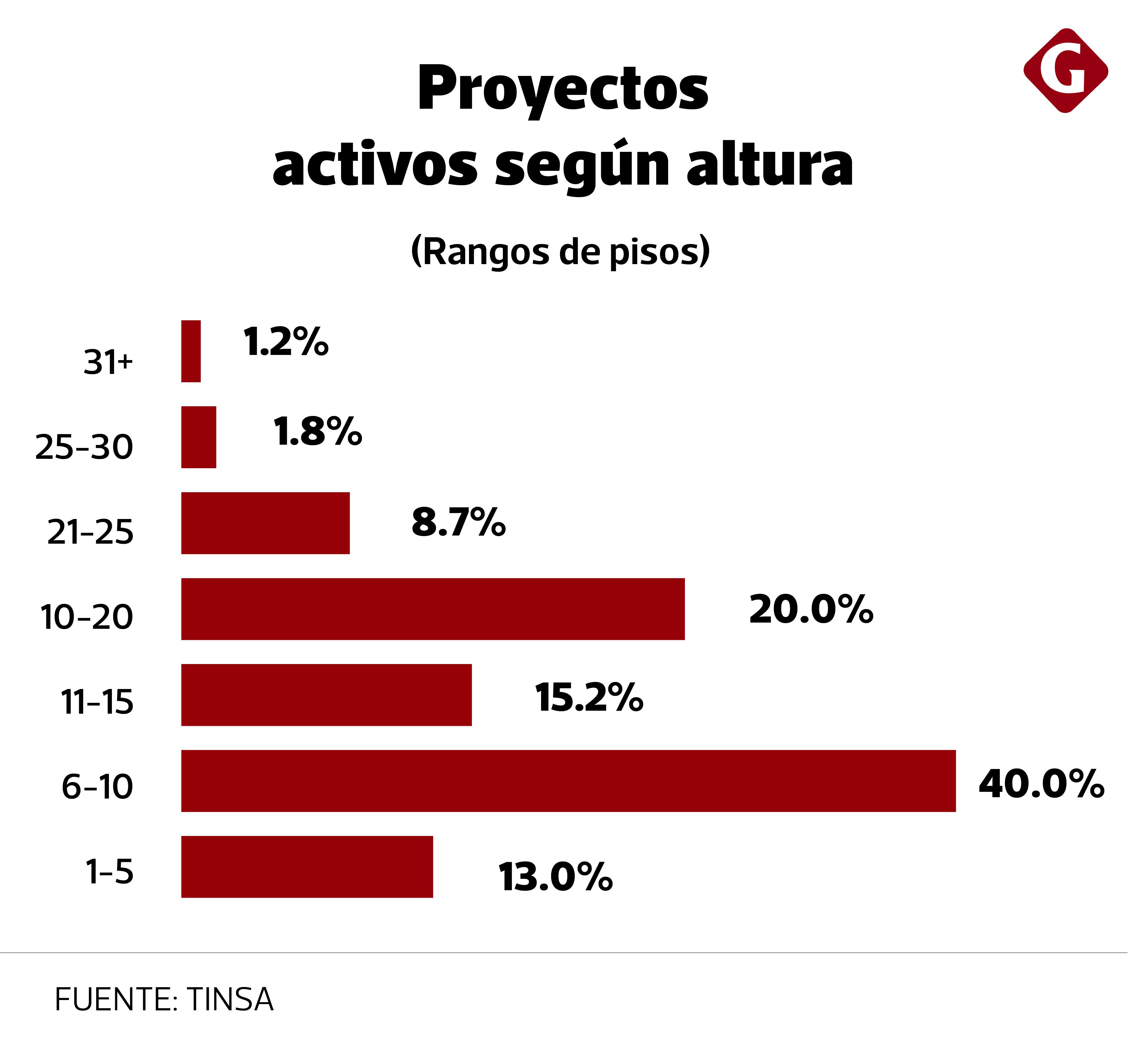 En Lima Metropolitana y Callao, el 40% de los edificios multifamiliares cuenta con entre seis y 10 pisos, mientras que el 20% tiene entre 16 y 20 niveles.