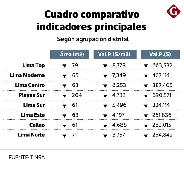 Lima Moderna y Lima Top concentran el 70.8% de la disponibilidad de unidades de vivienda. Le siguen Lima Centro con 14.4% y Lima Norte con 4%, según los datos de Tinsa.