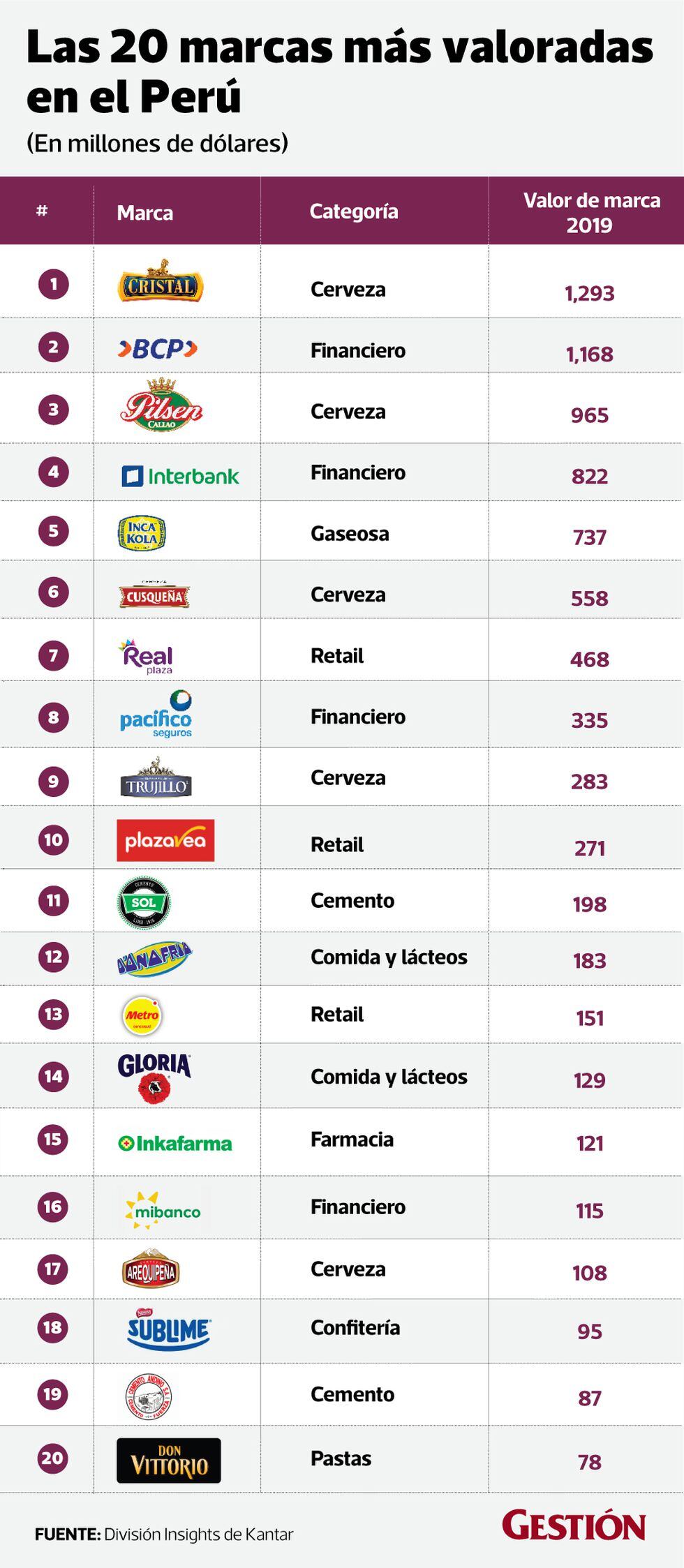 Es así que de las 20 marcas más valoradas por los peruanos, cinco son de cerveza; lo cual pone en evidencia la posición de la categoría.