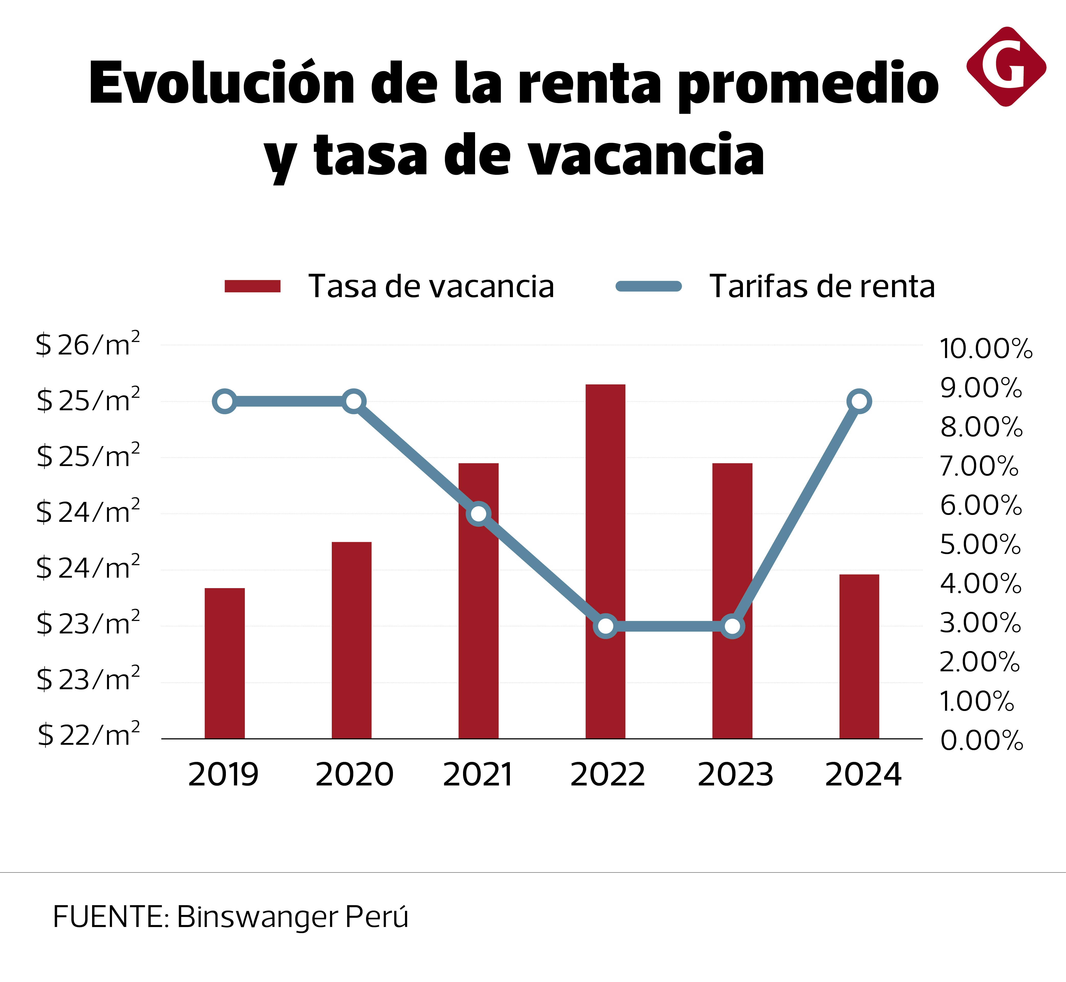 Según un análisis de Binswanger, desde 2023 se ha observado un aumento en las rentas y una recuperación en la vacancia en el corredor de SIF. El punto crítico de la vacancia se registró en 2022, cuando alcanzó el 9%, pero disminuyó a 7% en 2023 y llegó al 4% en 2024. “Lo mismo ocurrió con las rentas, que cayeron a US$ 23/m2 entre 2022 y 2023, pero están retomando los niveles previos a la pandemia, alcanzando nuevamente los US$ 25/m2”, añadió.