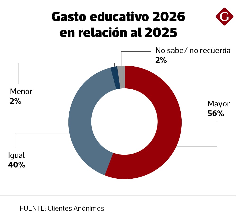 Según el análisis de la mencionada consultora, un 56% de limeños con hijos o dependientes en etapa estudiantil aseguró que su gasto en educación es mayor que el 2025; en tanto, solo un 40% indicó que el monto sería igual y un mínimo 2% percibe que es menor. Dentro de los conceptos por gasto educativo figuran, principalmente, pensiones y matrículas, útiles y materiales escolares, movilidad o transporte y otros gastos asociados al servicio educativo.