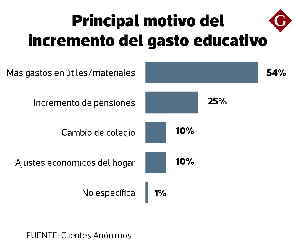 En esa línea, más de la mitad de padres capitalinos con hijos en edad escolar sostuvieron que la “compra de útiles y materiales escolares”, es el principal motivo del aumento; seguido de un 25% que coincidió en el “incremento de pensiones escolares; mientras que un 20% aludió a ”ajustes económicos del hogar y el cambio de colegio".