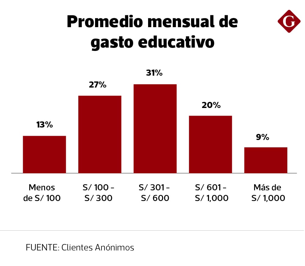 De este modo, un 51% de padres de familia capitalinos refirió que mensualmente destinará a gastos educativos entre S/ 300 y S/ 1,000; en tanto, que un 9% aseguró que sus desembolsos estarán incluso por encima de S/ 1,000.