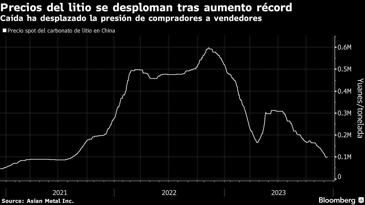 Una disminución de más de 80% registrada este año en los precios del litio no ha desanimado a los inversionistas, afirmó Van Alphen en una entrevista. Los precios del metal se han desplomado mientras la oferta aumenta y la cadena de suministro de los vehículos eléctricos agota sus inventarios.