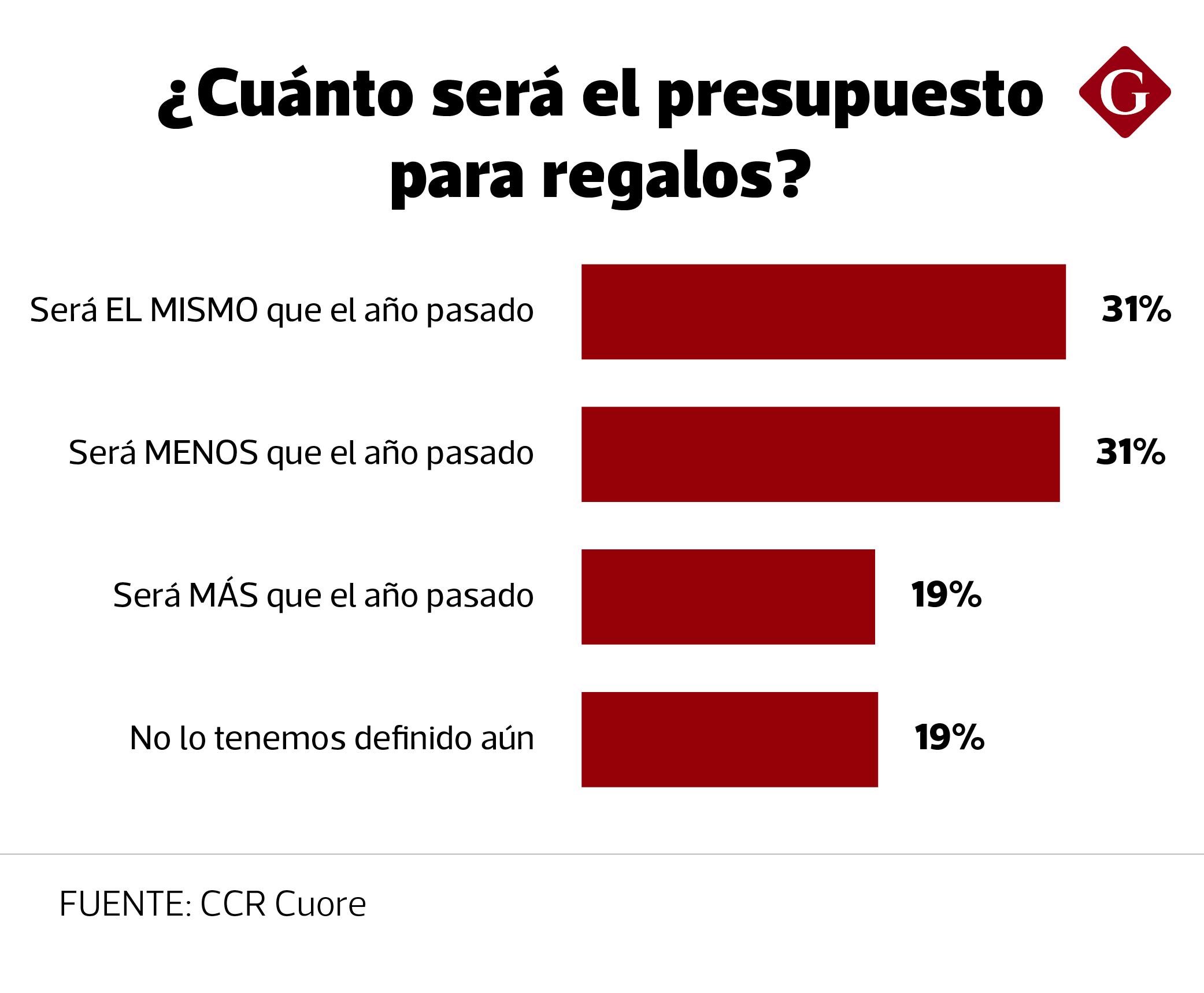 En torno al monto a gastar, un 31% de limeños sostuvo que el presupuesto para regalos “será el mismo que el año pasado”, mientras una cifra similar indicó que “será menos que el año pasado”. Solo un 19% aseguró que “será más que el año pasado”. En general, el gasto promedio que estima CCR Cuore que desembolsarán los limeños en regalos es de S/ 444.