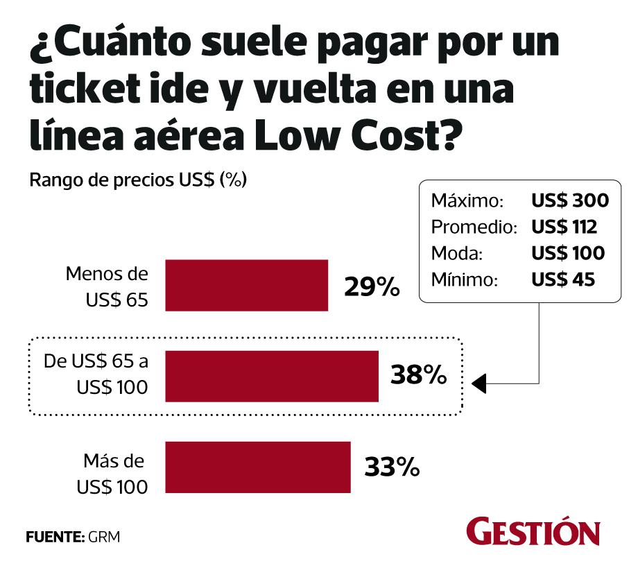 “Esto básicamente esto se da debido que todavía –pese a que las aerolíneas low cost están operando en Perú desde hace dos años– los consumidores no tienen muy claro cuáles son las aerolíneas bajo el formato de bajo costo y las reglas que imponen”, indicó la gerenta de GRM.