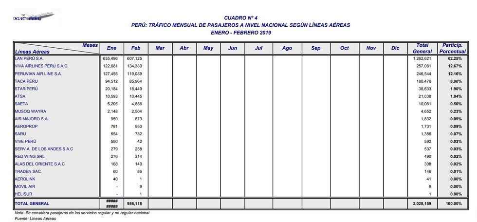 La línea aérea de bajo costo, Viva Air se posicionó como la segunda aerolínea en el mercado peruano, ocupando el 12.67% de participación de mercado en febrero, de acuerdo con los resultados publicados por la Dirección General de Aeronáutica Civil (DGAC).