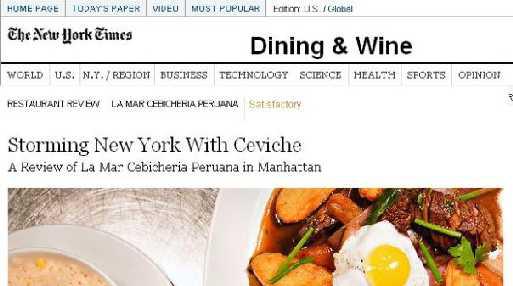 La crítica se publicó en el New York Times , algo así como el abre sésamo de la fama culinaria, en donde Wells calificó su visita de satisfactoria, pero no dejó escapar el mal servicio que encontró en el octavo local de La Mar en el mundo, inaugurado hace unos seis meses.