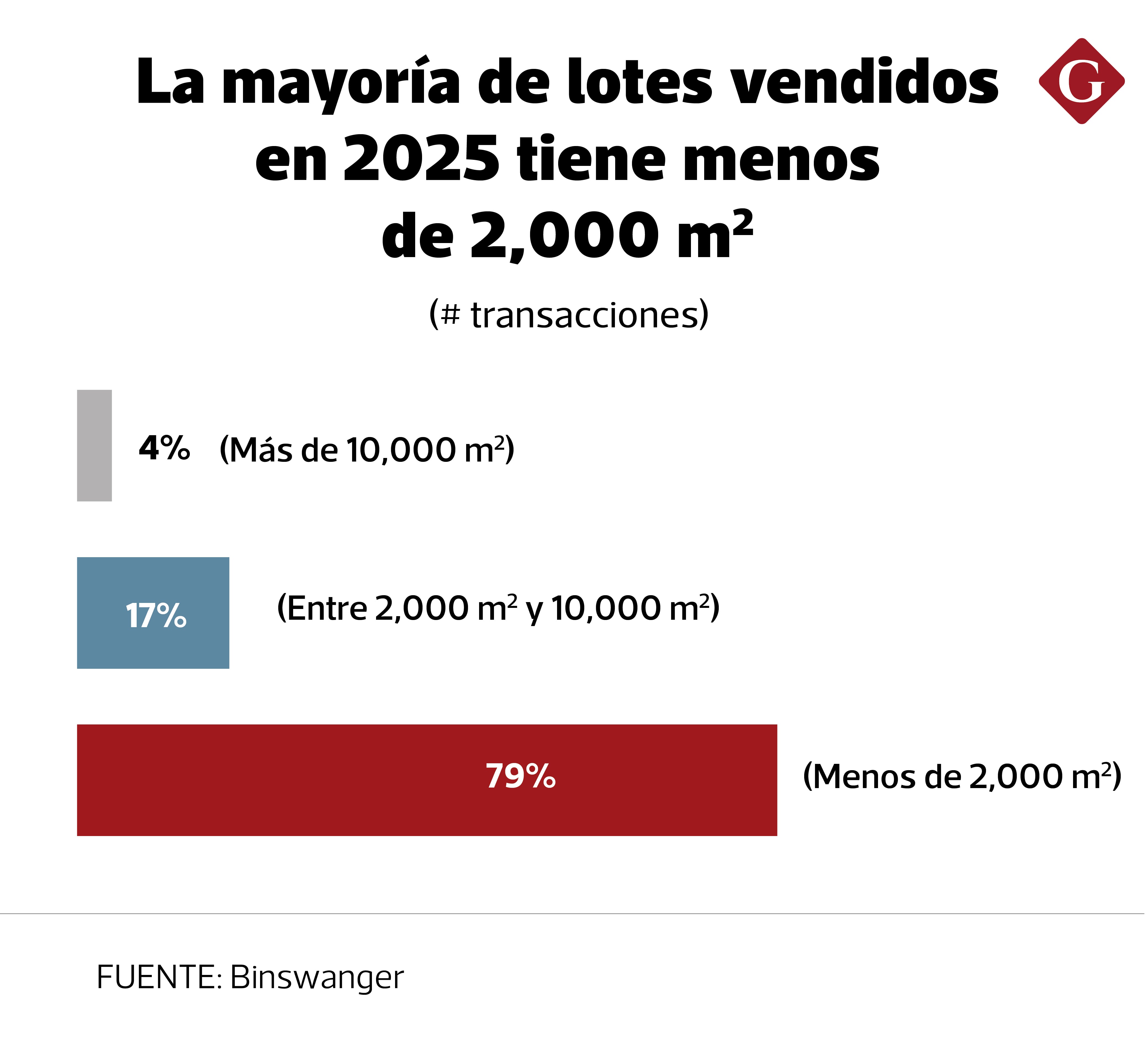 A ello se suma la presencia de inversionistas privados, que adquieren lotes de entre 1,000 y 2,000 m2 con fines de valorización futura. De hecho, el 77% de la demanda se concentró en lotes menores a 2,000 m2. No obstante, el segmento de terrenos de 2,000 a 10,000 m2 elevó su participación de 13% a 18%, impulsado por el crecimiento de empresas que requieren ampliar operaciones.