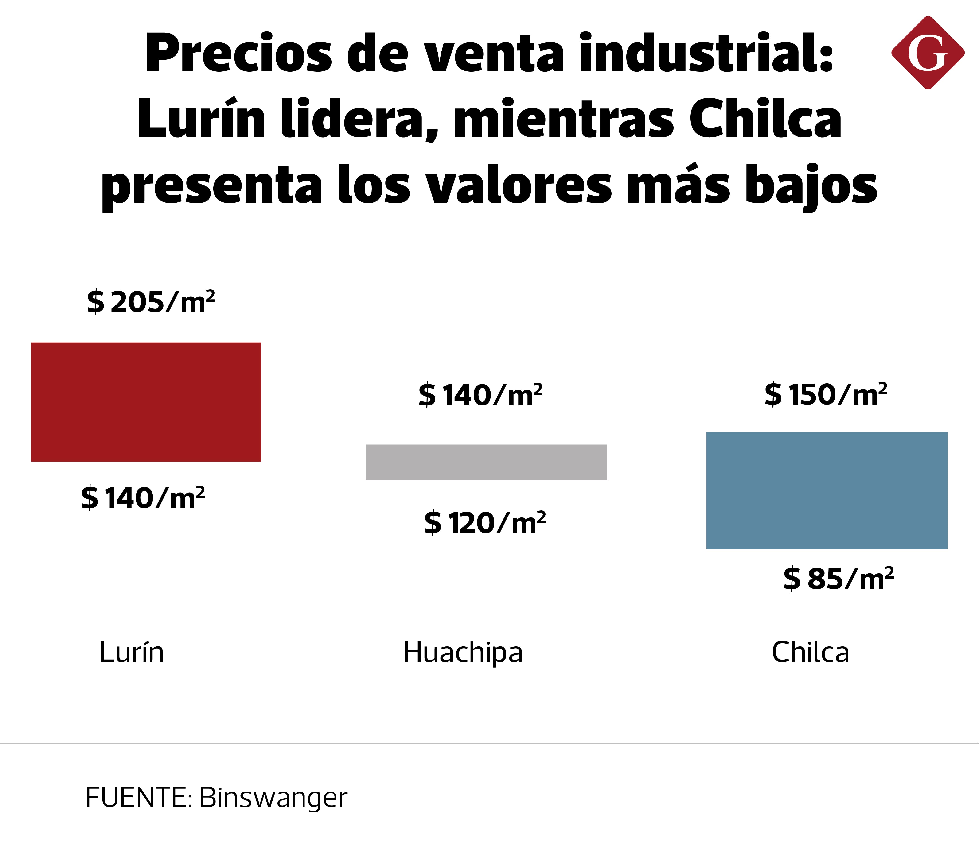 Así, aunque los valores oficiales no han variado, en varios proyectos los desarrolladores han ajustado la flexibilidad comercial para sostener sus ingresos en dólares. Esta práctica, precisó el especialista, podría mantenerse también durante el 2026. En cuanto a los valores por eje industrial, los precios de venta se ubicaron en Lurín entre US$ 140 y US$ 205 por m2; en Huachipa entre US$ 120 y US$ 140 por m2; y en Chilca entre US$ 85 y US$ 150 por m2, dependiendo de la ubicación y características de cada parque.
