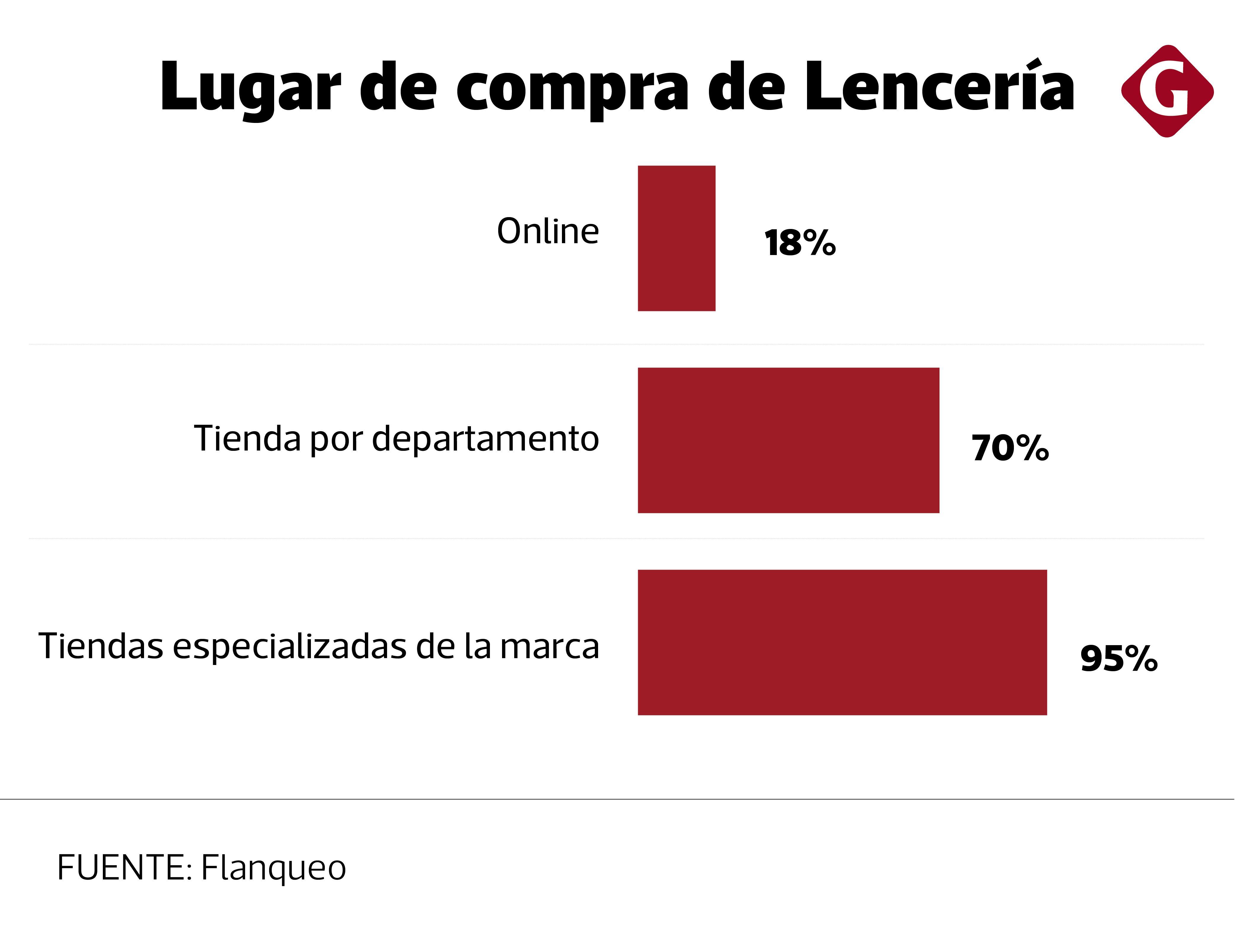La compradora de lencería usa diversos canales para adquirir estos productos. Así, las tiendas especializadas de la marca son las que más escogen las usuarias con un 95% de preferencia, seguido de las tiendas por departamento con 70% y el canal online con un 18% de participación. No obstante, este último ha tenido un crecimiento relevante a partir de la pandemia, ya que en el 2019 la venta por esta vía no llegaba al 5%.
