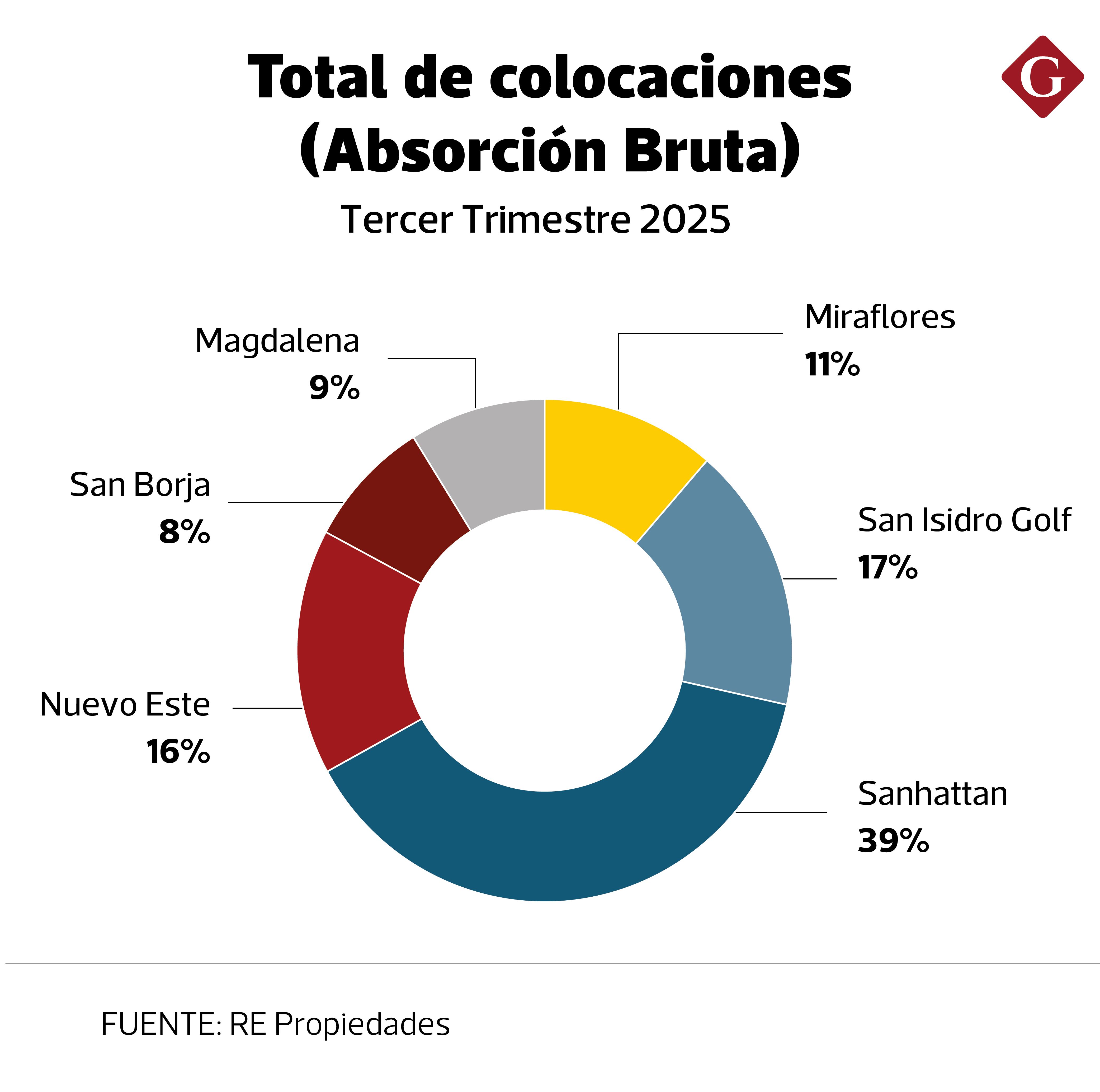 En efecto, durante el tercer trimestre, los submercados con mayor participación en el total de colocaciones fueron Sanhattan, San Isidro Golf y Nuevo Este.