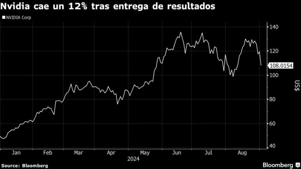 Las acciones de Nvidia Corp. están arrastrando consigo a la industria de los semiconductores. El fabricante de chips cayó hasta un 9.7% el martes, una tendencia negativa que comenzó con la entrega la semana pasada de resultados que no estuvieron a la altura de las elevadas expectativas del mercado. La baja ha borrado más de US$ 240,000 millones en capitalización de mercado y contribuyó a una caída del 6.1% en un índice de la industria de chips.
