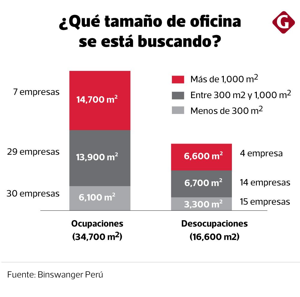 “El coworking continúa expandiéndose y tomando metros cuadrados. En menor medidas empresas del sector tecnológico, minero, retail, entre otros”, añade Daniel López. En concreto, al segundo trimestre del año siete empresas demandaron más de 1,000 metros cuadrados (ocupando 14,700 metros cuadrados).