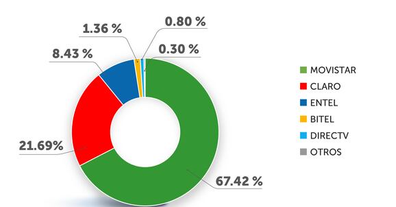 Movistar concentró la mayor cantidad de reclamos presentados, al acumular 621,136, equivalente al 67.42% del total. Le siguió Claro, con 199,857 quejas, que representan el 21.69%. Luego se ubicaron Entel, con 77,640 (8.43%); Bitel, con 12,496 (1.36%), y DirecTV, con 7,393 (0.80%).