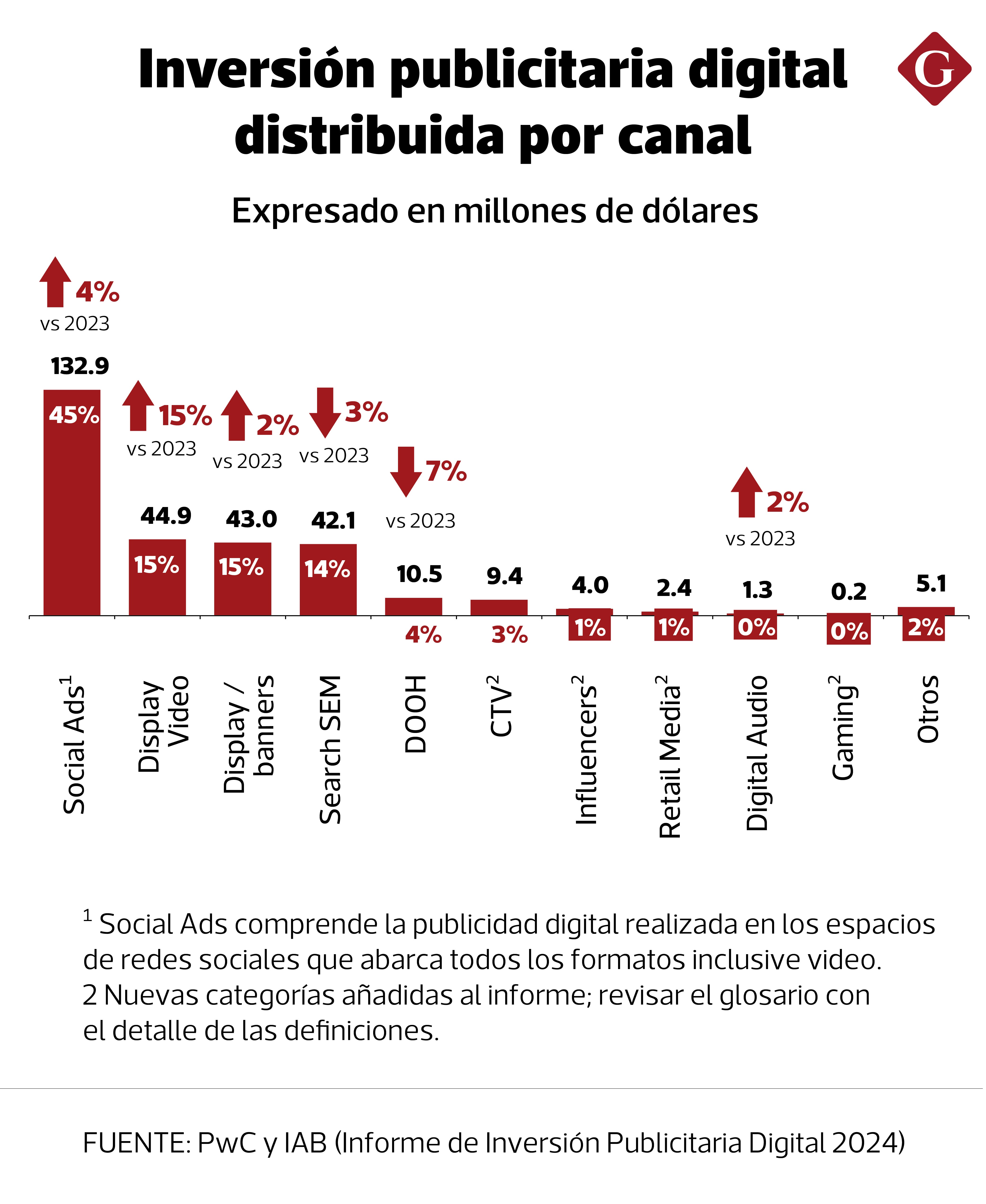 La inversión en Mobile, cuyo crecimiento en los últimos años ha sido impulsado por el aumento en el uso de dispositivos móviles, logró un incremento de 18% en comparación con 2023, mientras que la inversión en Desktop se redujo un 16%.