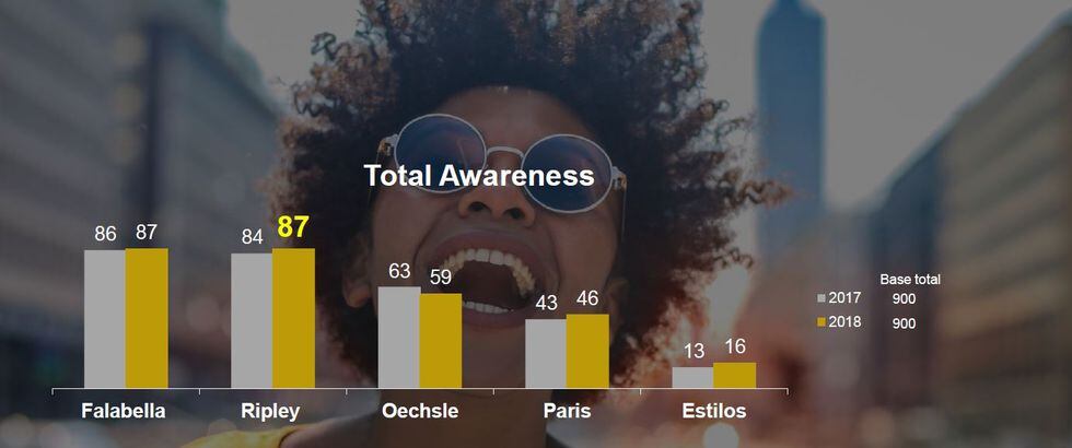 “No siempre se cumple que las marcas más recordadas son las más vendidas, pero si se ofrece una adecuada ecuación de valor a los compradores esto sí se da. Así por ejemplo en el caso de Ripley que han crecido en recordación y preferencia también lo han hecho en número de compradores y en gasto promedio”, mencionó la country manager de la división Insights de Kantar, Catalina Bonet .