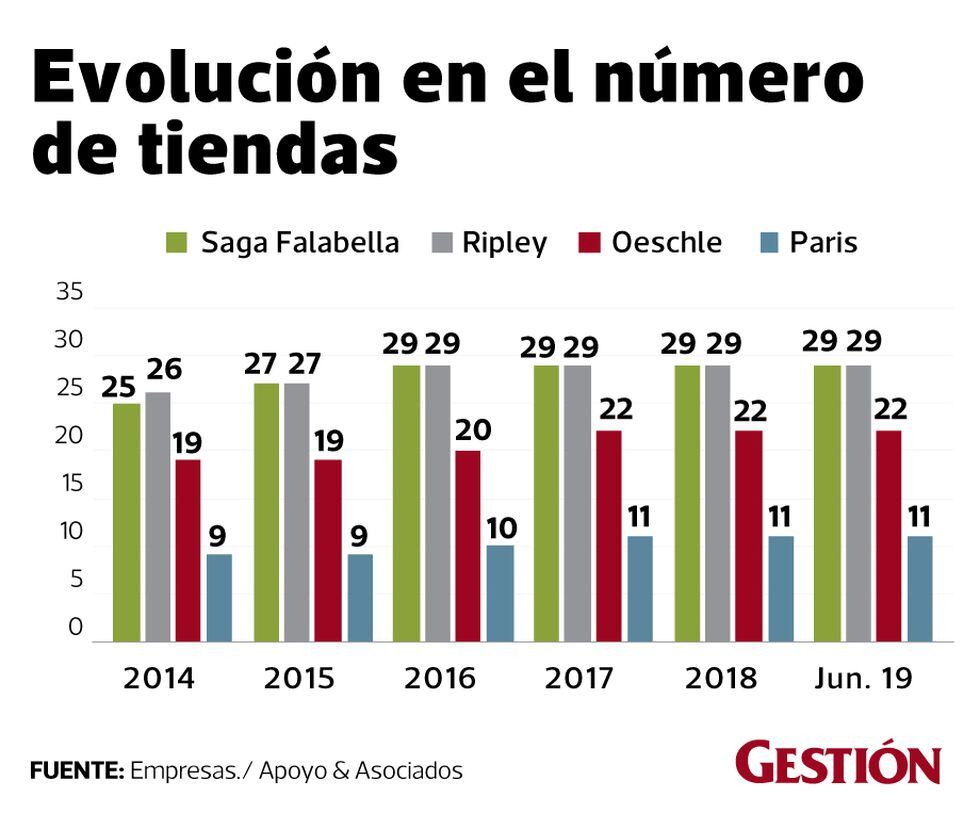 Cabe mencionar que Paris (Grupo Cencosud) hizo su ingreso al mercado peruano en el 2013 y al cierre del primer semestre del 2019 ya operaba 11 tiendas (6 en Lima y 5 en provincias), y planeaba abrir una tienda más este año (Paris San Miguel en Lima).