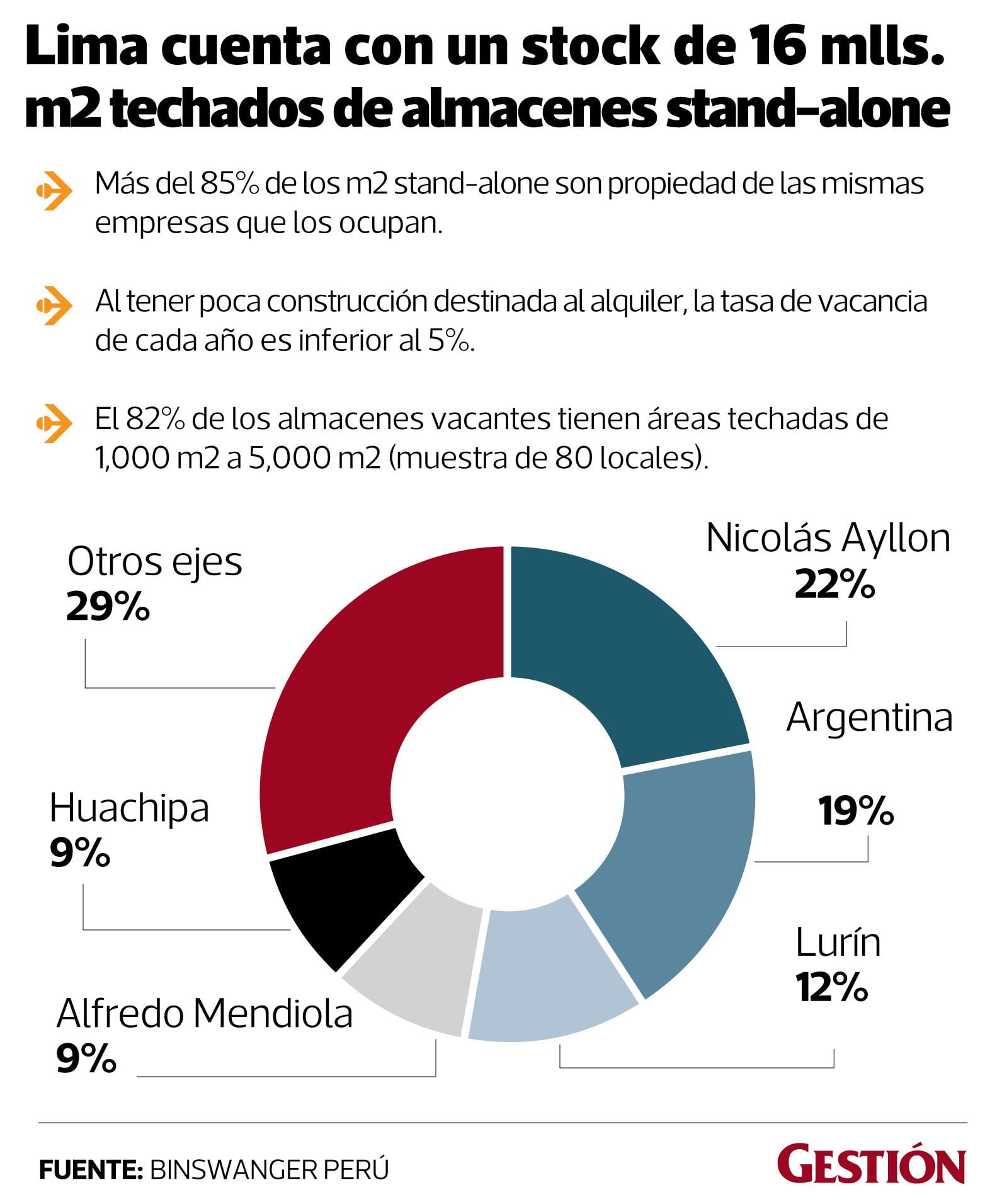 Así, el mercado de Lima cuenta con un stock de 16 millones de metros cuadrados techados de almacenes stand alone, de los cuales más del 85% son propiedad de las mismas empresas que los ocupan.