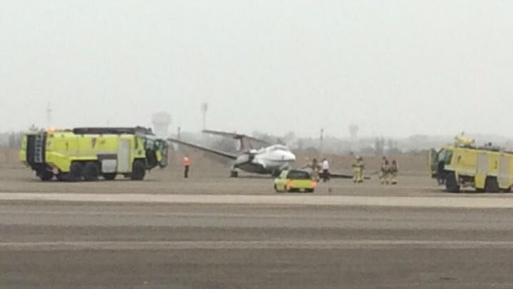 El tren de aterrizaje de la nave está malogrado, por lo que se encuentra ocupando la única pista del terminal. Los bomberos prestan apoyo en el lugar.