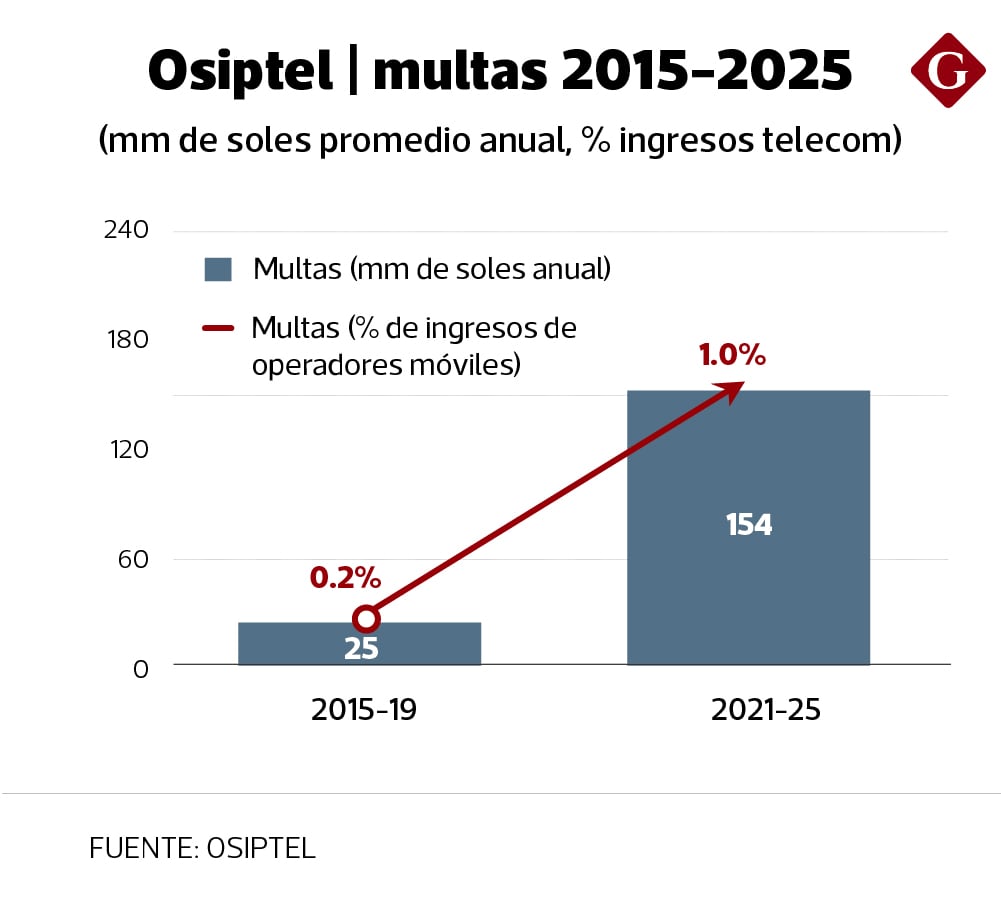 Según el informe, el monto de sanciones en telecomunicaciones ya equivale al aporte que realizan las operadoras al Fondo de Inversión en Telecomunicaciones (FITEL), destinado a reducir la brecha digital. “Los operadores aportan al FITEL el 1% de sus ingresos, unos S/ 150 millones, un monto similar al que se paga en multas; en la práctica, es como un aporte adicional”, explicó.