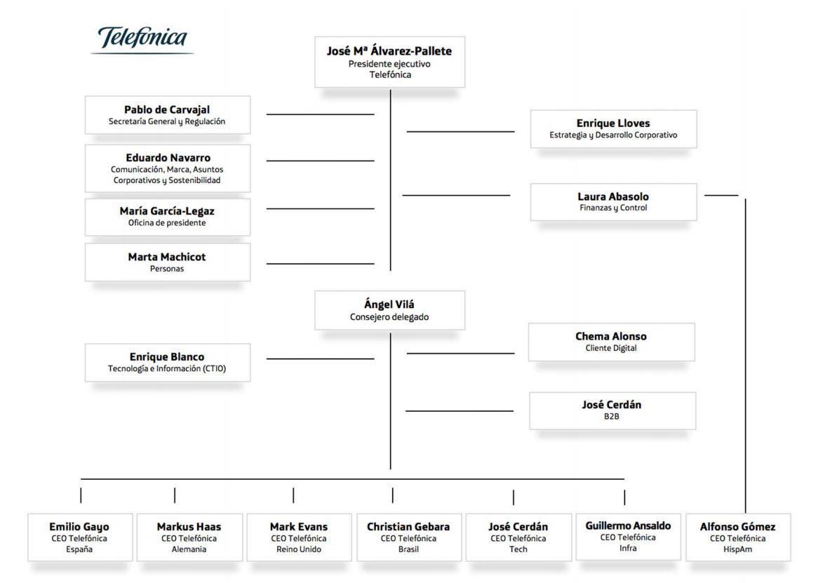 A continuación, se incluye el organigrama del nuevo Comité Ejecutivo del Grupo Telefónica: