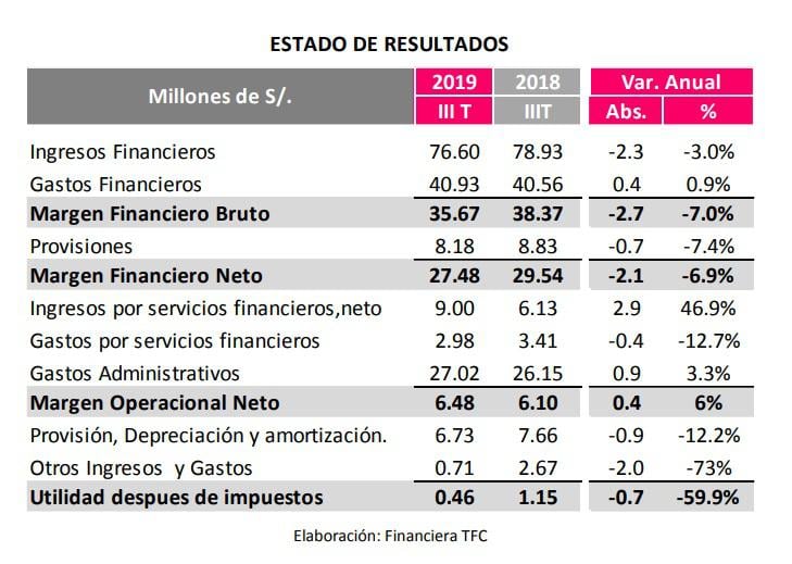 Según el último reporte que envió TFC a la Superintendencia de Mercado de Valores (SMV), con data al tercer trimestre del 2019, la compañía arrastraba una caída anual de sus utilidades en 59% (ver cuadro)
