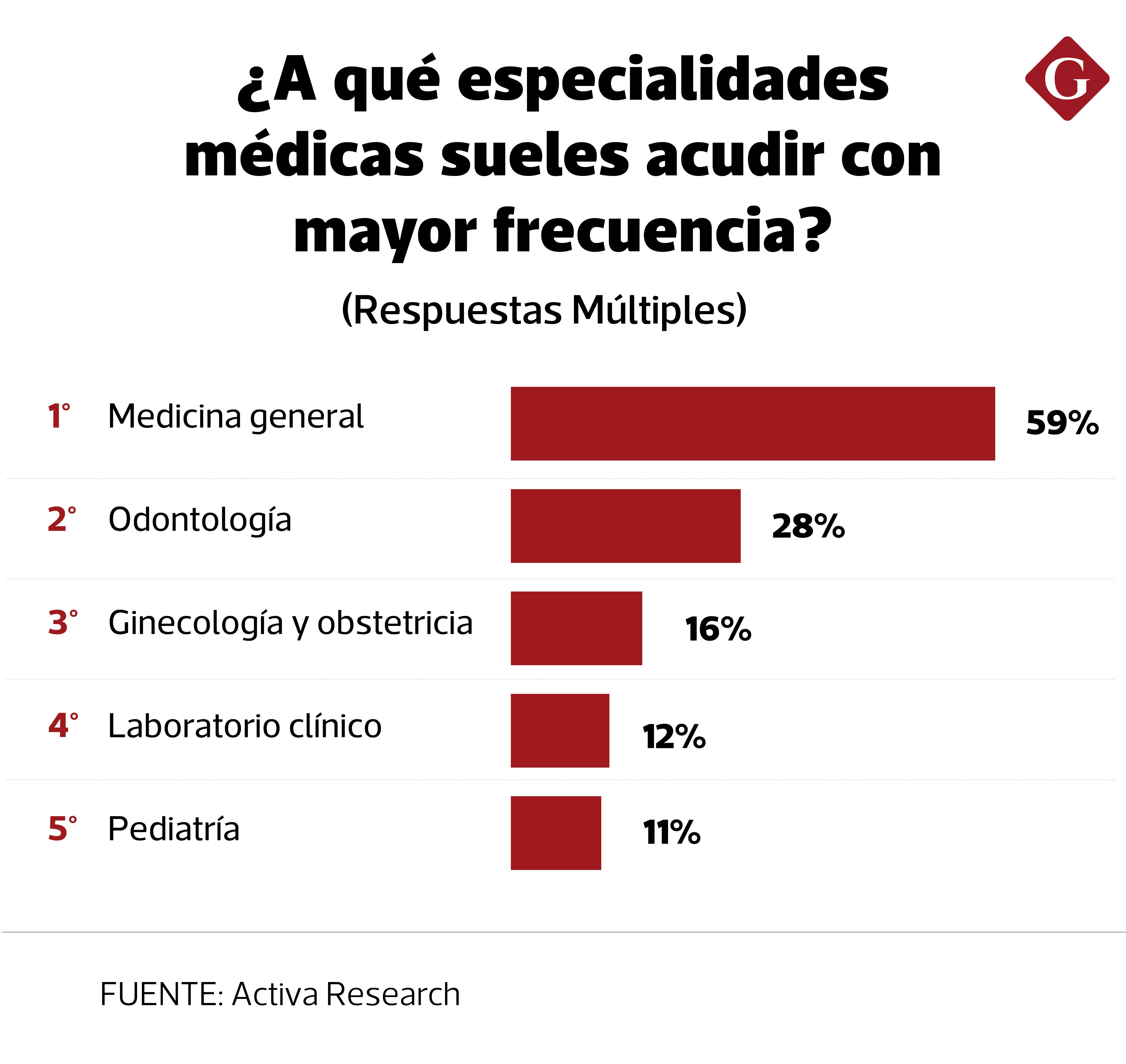 - Medicina general, odontología, ginecología y obstetricia, laboratorio clínico y pediatría, son las especialidades más frecuentadas por los peruanos.