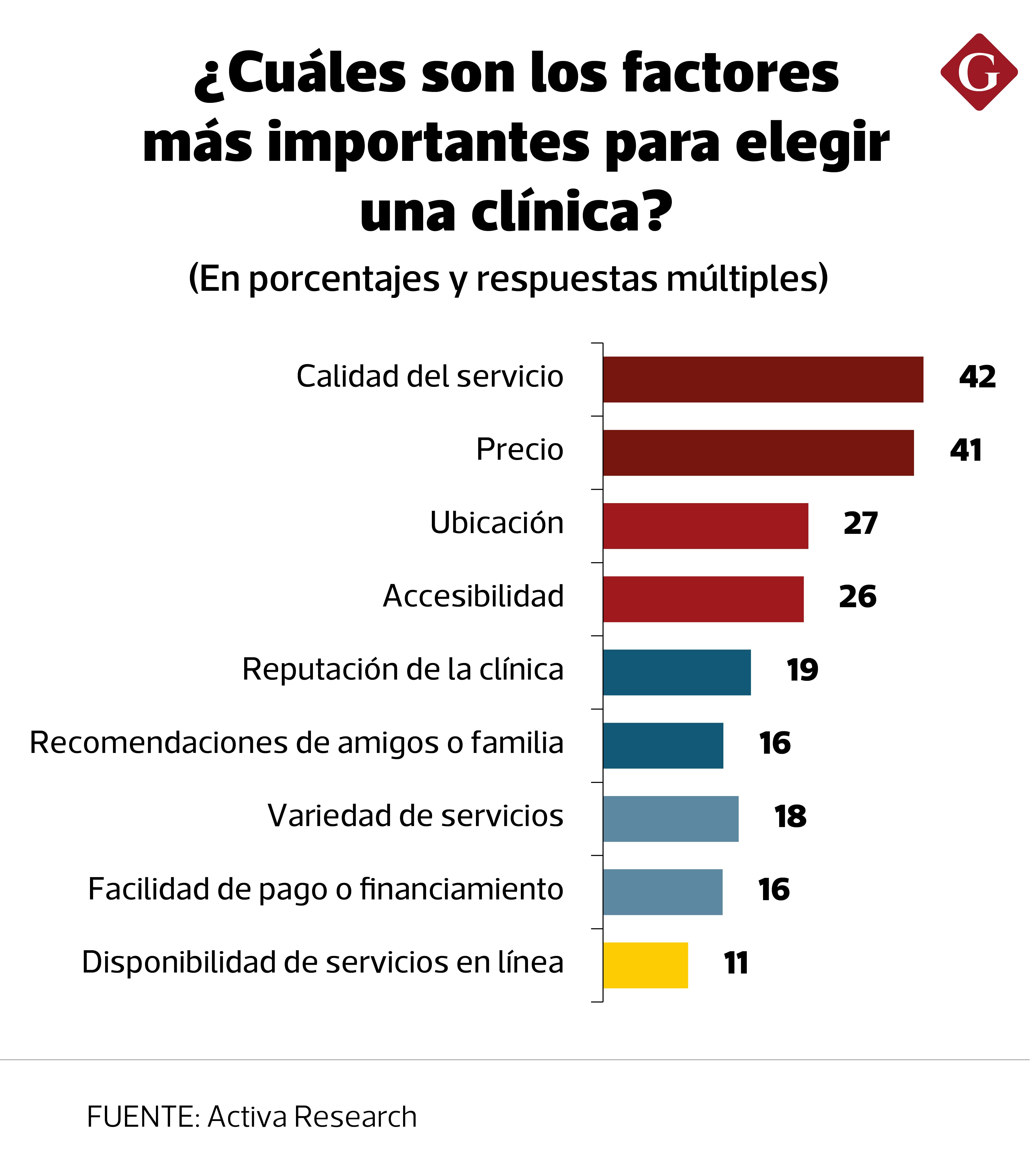 Para este segmento que acude a la atención privada; principalmente, encabezada por clínicas, los factores que determinan su elección están vinculados a atributos de valor percibido y conveniencia física, priorizando calidad de servicio, precio, ubicación, accesibilidad, reputación de la clínica, entre otros. “La elección de clínica se decide, en especial, porque la atención sea buena y “valga lo que cuesta”. Luego pesa la conveniencia de cercanía y facilidad de acceso”, explicó Hilario Chong Shing, gerente de la Unidad de Customer Experience de Activa.