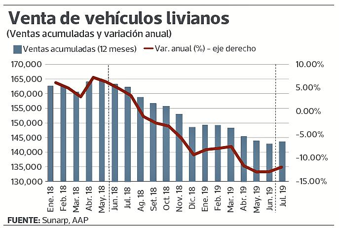 Si bien la tendencia de las ventas acumuladas de vehículos livianos presenta una senda descendente, el dato de julio podría ser un punto de inflexión en la evolución, anotaron.