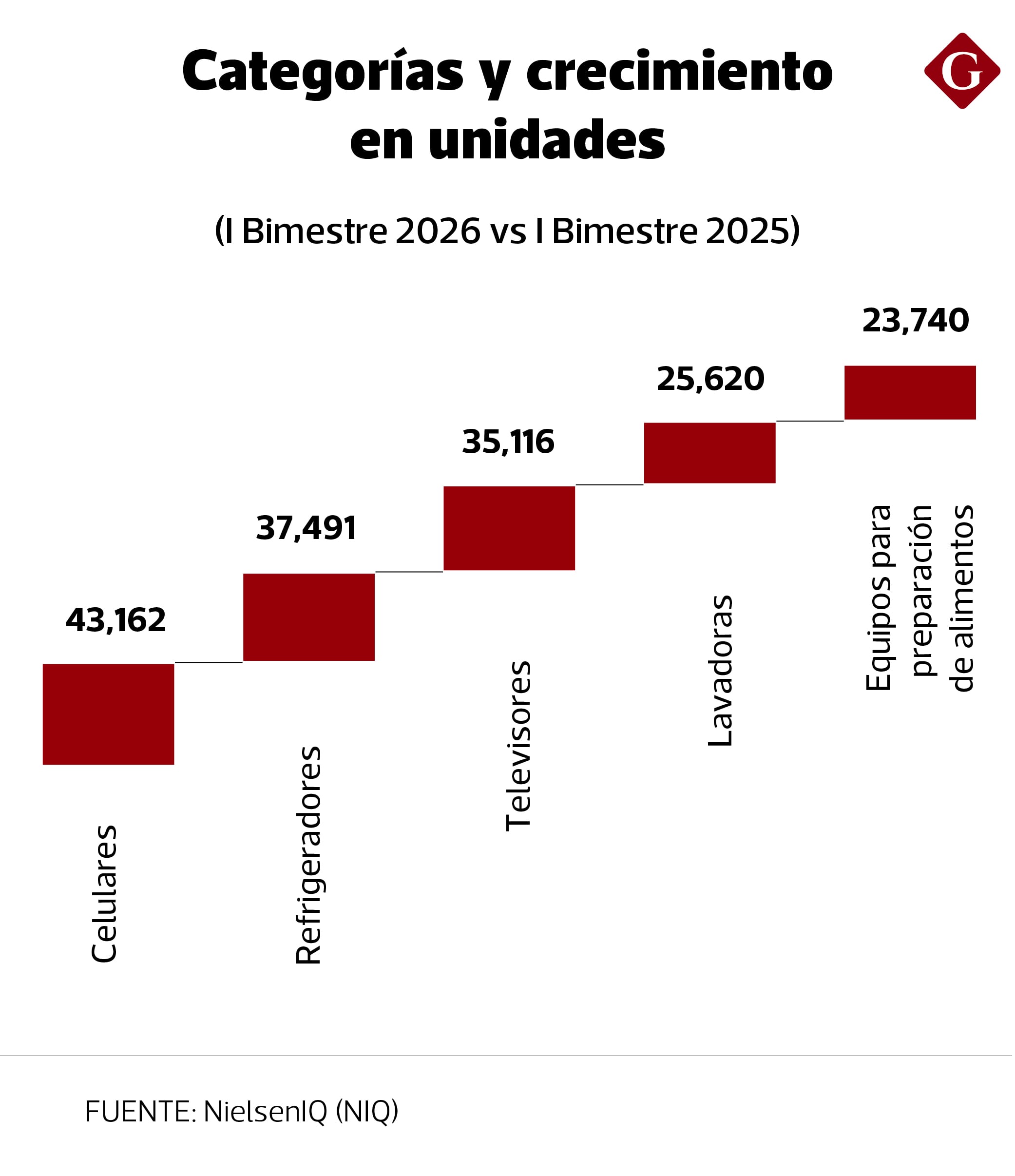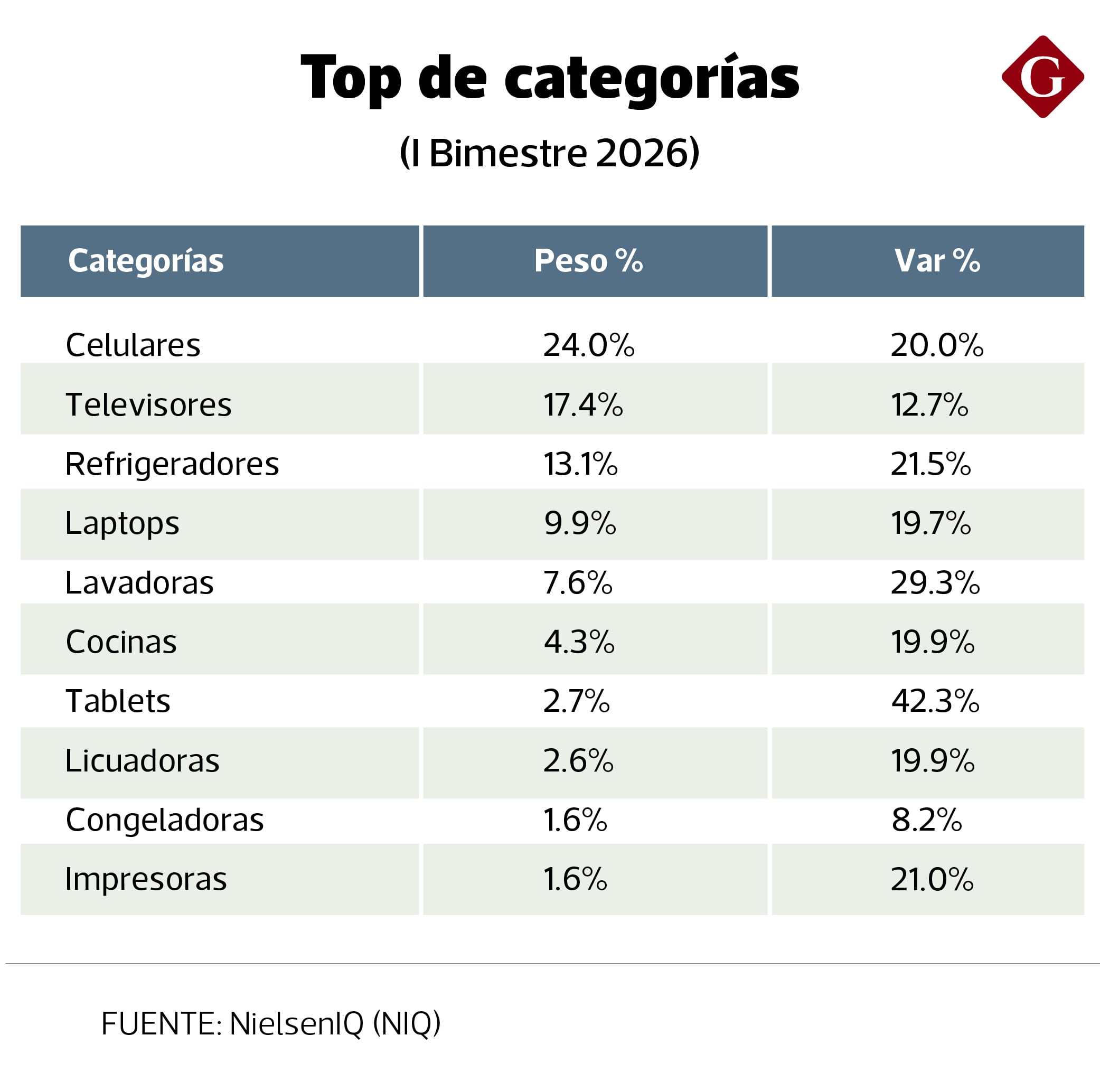 En el análisis, las unidades vendidas entre enero y febrero último superaron en 18% a la cantidad expedida en similar periodo del 2025, considerando un incremento de casi 20% en valor facturado. En el detalle, las categorías con mayor participación de venta fueron celulares, televisores, refrigeradoras, laptops, lavadoras, todas con un aumento en transacciones de dos dígitos en relación a la misma etapa del 2025.