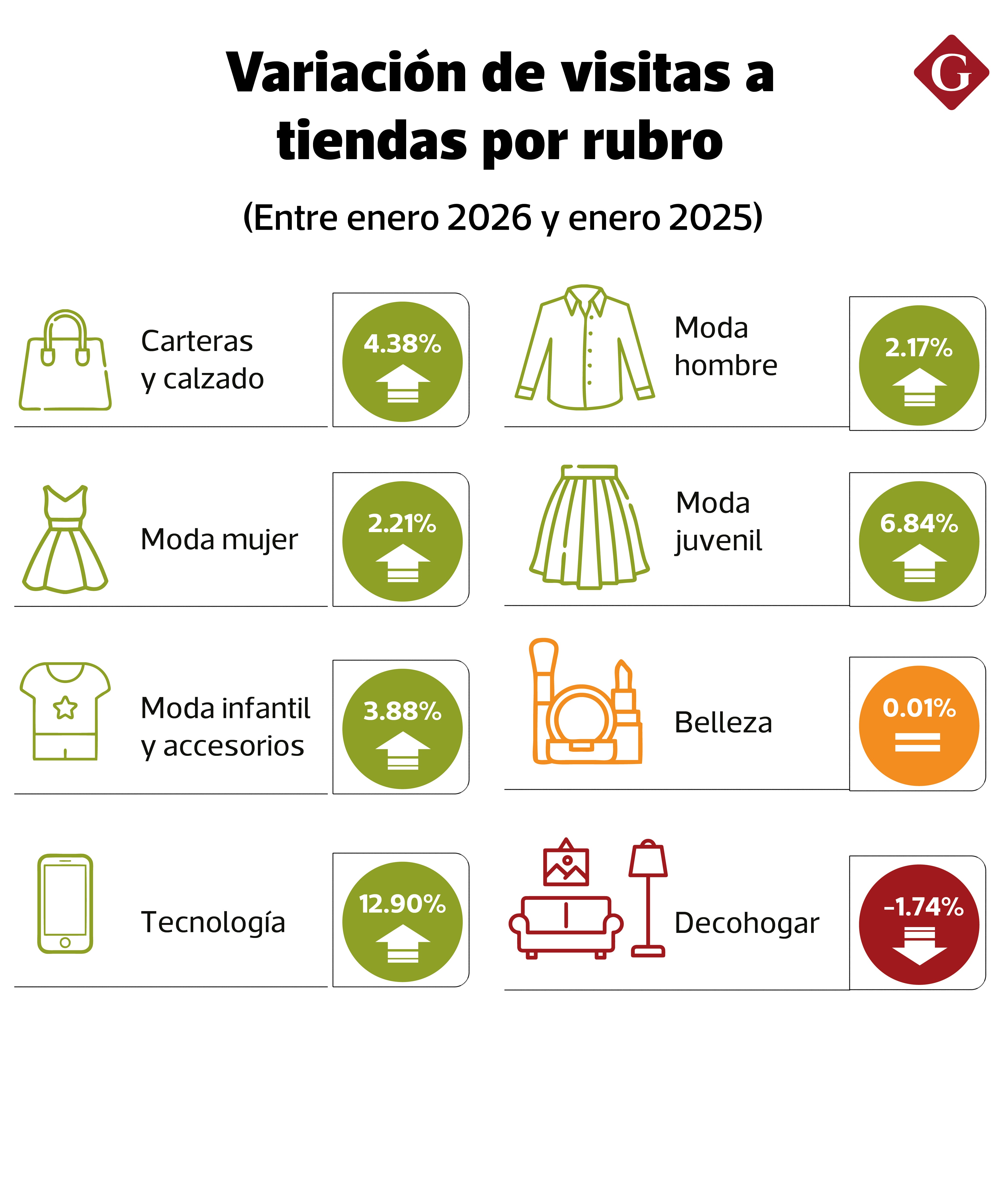 Por categorías, las diferentes tiendas de tecnología están cubriendo la mayor atención de los peruanos. En concreto, en enero de 2026, la asistencia a dichos locales creció 12.9% en relación con igual periodo de 2025. Al respecto, Mori destacó que este impulso en tecnología no es un fenómeno que se haya visto en los últimos meses; sin embargo, respondería al trabajo de las diversas marcas por mejorar oferta y surtido en los locales.