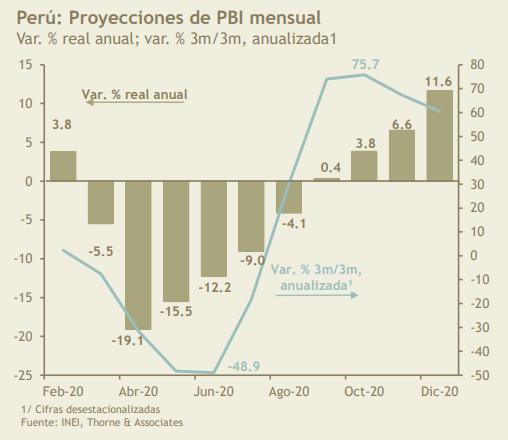 En este contexto, el PBI nacional se contraría en el 2020 por primera vez después de 21 años. Según Thorne & Associates, la economía caería 3% este año, alcanzando cifras negativas consecutivas desde marzo hasta al menos setiembre; la mayor caída se daría en el segundo trimestre (-15.6%).