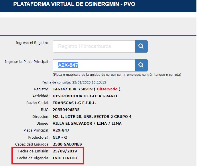 A pesar de tal incidente, el camión continuó sin registro -y no se sabe si continuó operando en mal estado- hasta casi un año después. Recién el 25 de setiembre del 2019, es decir hace cuatro meses, Osinergmin le dio luz verde al camión transportador de GLP a granel sin saber que este había tenido un accidente en el 2018. Además, Osinergmin sostuvo que el registro fue observado hoy justo después del accidente ocurrido, pues está en proceso la resolución de anulación de la autorización.