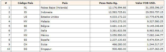 En el presente año, el Perú exportó US$ 148 millones en la partida de "cacao en grano, entero o partido, crudo excepto para siembra", lo que evidenciaría que cerrará el año con un crecimiento de 7.7% en los envíos. En tanto, los destinos de exportación de cacao peruano en el presente año son Países Bajos, Indonesia y los Estados Unidos.