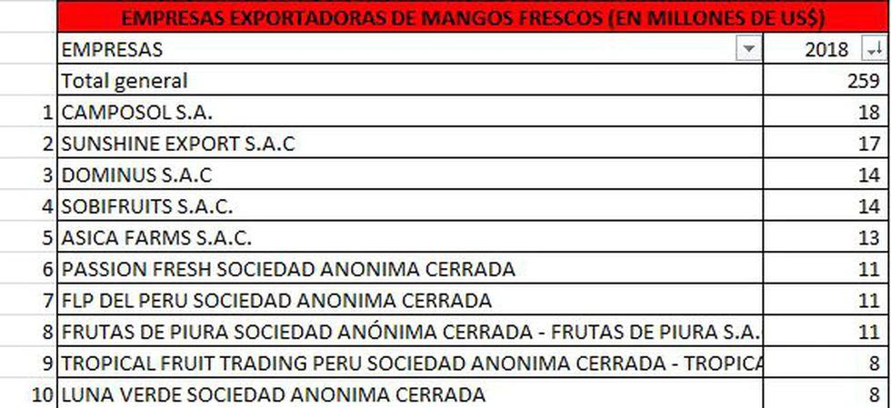 Desde el inicio de la campaña de mango 2019-2020 en octubre, los exportadores de mango del país dejaron de enviar 100 contenedores de esta fruta a Chile, debido a las protestas sociales que se mantienen desde hace tres semanas, informó la Asociación Peruana de Productores de Mango (Promango). Dicha carga está valorizada en US$ 1’500,000.