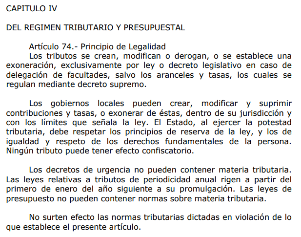 El cuestionamiento surge debido al artículo 74 de la Constitución Política del Perú, que establece que las leyes de presupuesto no pueden contener disposiciones de carácter tributario. Este principio busca evitar que temas fiscales, como la creación de impuestos o la modificación de regímenes tributarios, se legislen dentro de normas destinadas exclusivamente a regular los gastos e ingresos del Estado.
