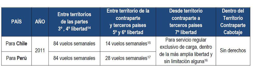 ¿Cabe una modificación al acuerdo bilateral entre Perú y Chile? Al respecto, desde el Ministerio de Transporte y Comunicaciones (MTC) afirmaron a este diario que se tiene una frecuencia más que aún no es utilizada y que podría ser explotada.