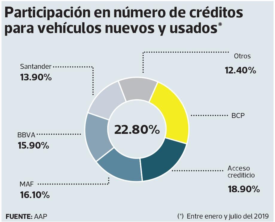 En general, se ha intensificado la competencia de la banca en los préstamos vehiculares a través da cuotas iniciales más bajas y plazos de pago más largos (Gestión 02.08.2019). Di Paola refirió que hay entidades financieras que ofrecen incluso una cuota inicial cero.