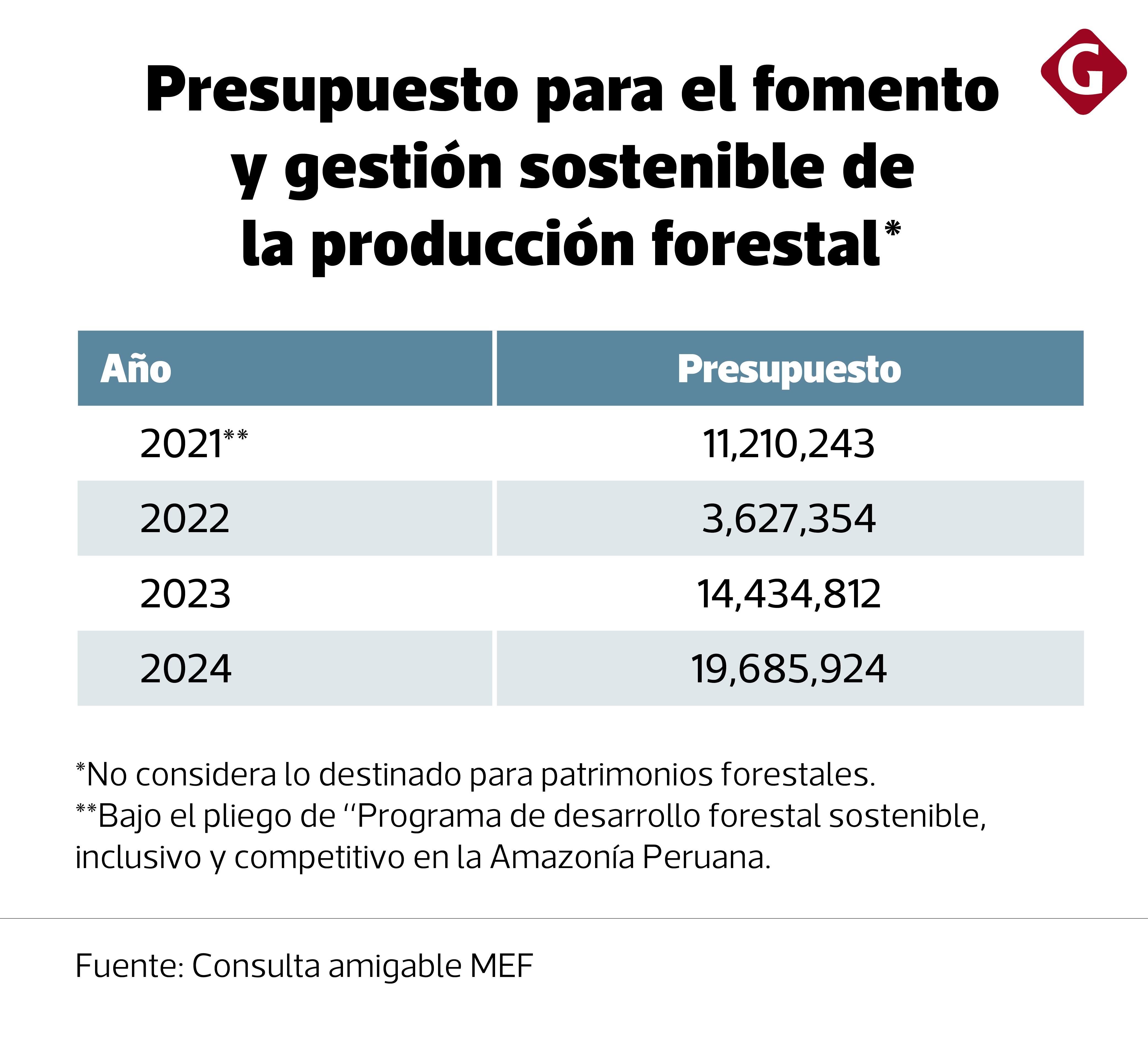 Esto ocurre en un contexto donde diversos expertos consultados para este informe criticaron la histórica baja asignación de recursos para el Servicio Nacional Forestal y de Fauna Silvestre (Serfor). Este año, para el fomento y gestión sostenible de la producción forestal solo se asignaron S/19.7 millones.