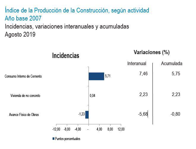 El sector servicios es otro de los que los permitió la recuperación del PBI en agosto con un crecimiento de 3.92%. A ello se suma el sector construcción que creció en 4.53% reflejado en el incremento del consumo interno de cemento (7.46%) ante la continuidad de obras privadas; sin embargo, fue contrarrestado parcialmente por la disminución del avance físico de obras públicas (-5.68%).