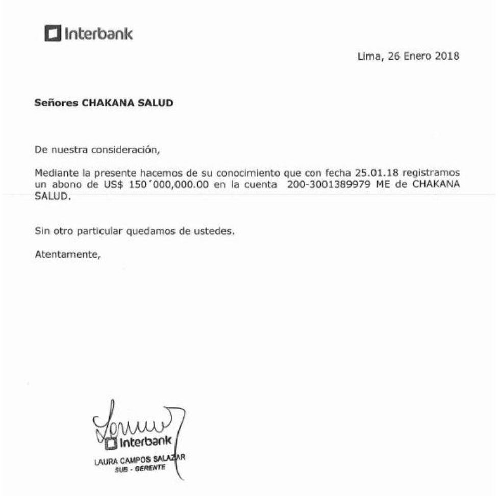 Con relación al aporte de capital realizado por NG Infra II S.A.C., vehículo de inversión de NG Capital Partners II, L.P., a la sociedad IR Pharma S.A.C. (antes Chakana Salud S.A.C.), este monto ascendió a US$ 150 millones.