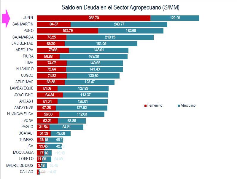 Con el Padrón de Productores por Departamento (de 1.4 millones), la directora independiente de Agrobanco sostuvo que Junín es la región con mayor cantidad de agricultores con deuda con S/ 404.99 millones.