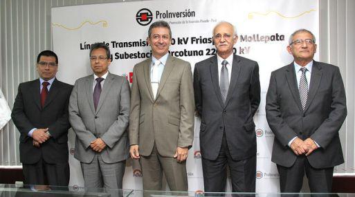 ProInversión adjudicó hoy a la empresa Interconexión Eléctrica la Buena Pro de los proyectos Línea de Transmisión 220 kV Friaspata-Mollepata (Huancavelica – Ayacucho) y la Subestación Orcotuna 220/60 kV (Junín).