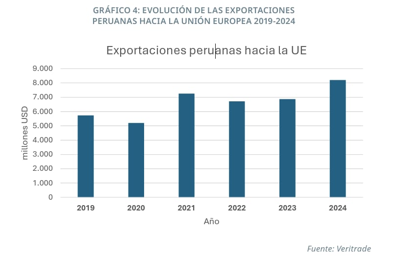 Entre el 2019 y el 2024, la estructura exportadora del Perú se mantuvo dominada por los sectores mineros y agropecuarios. Aunque, según la UE, hay una tendencia progresiva hacia una mayor diversificación.