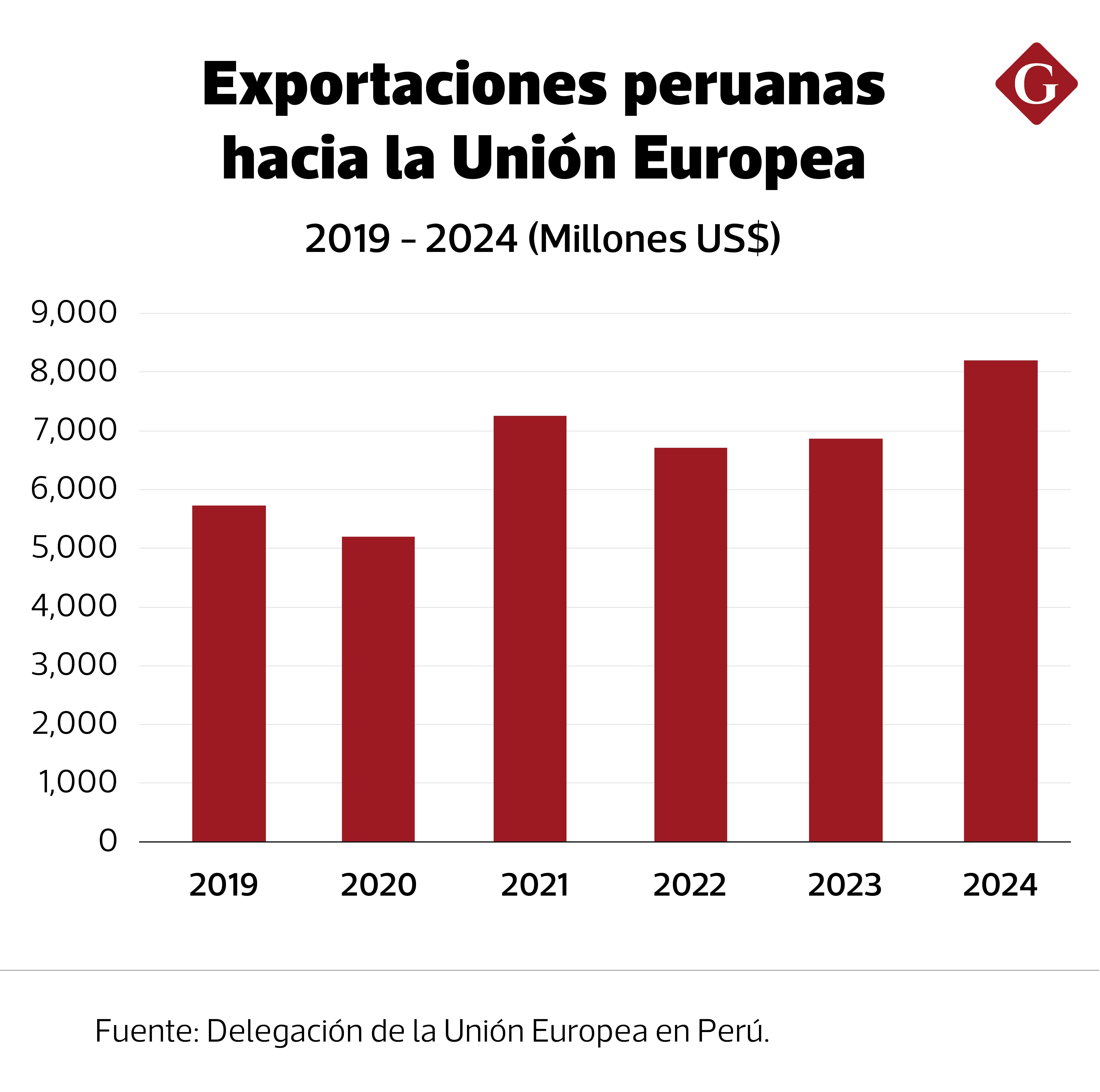 “Son más de US$ 12 mil millones por año y hay un superávit a favor de Perú de US$ 3.4 mil millones. Son cifras basadas en nuestro acuerdo de libre comercio, vigente desde el 2013. En los últimos 5 años, las exportaciones peruanas hacia la UE han crecido más de 40%”, resumió Hatwell.