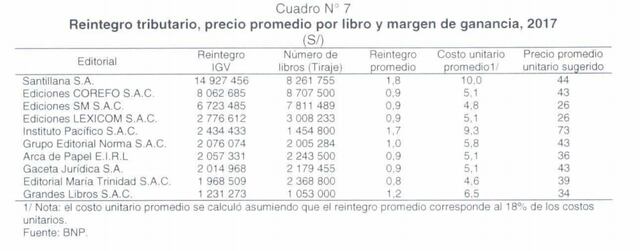 Así, señalaron que el 88% de los proyectos editoriales en el Perú son de textos educativos. Así, el 51% del beneficio de reintegro tributario se ha concentrado en 3 editoriales de textos educativos. Mientras que el 76% del beneficio se concentró en 10 editoriales del mismo rubro.