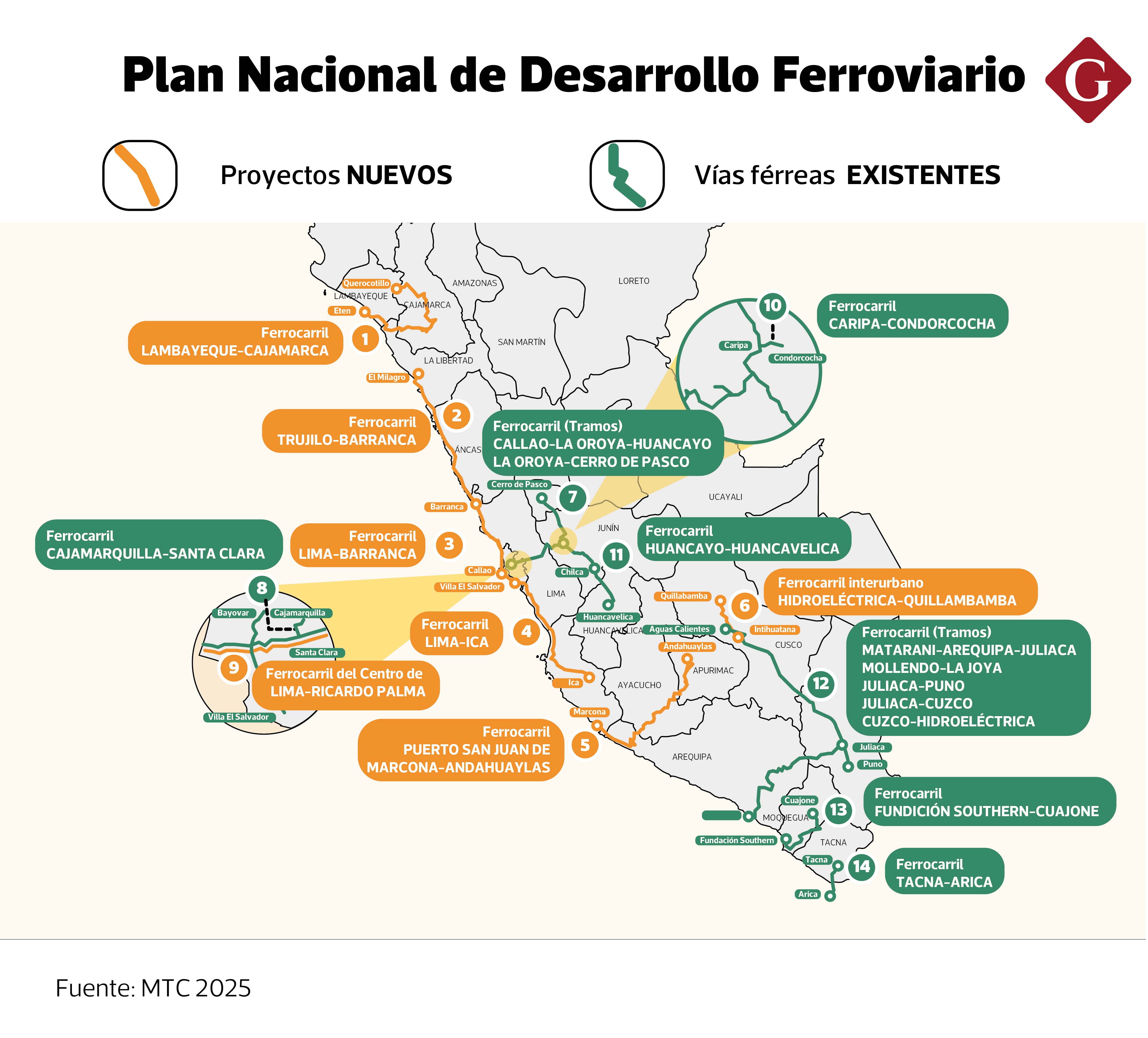 Todos estos proyectos están contemplados en el llamado Plan Maestro de Desarrollo Ferroviario, que el Ministerio de Transportes y Comunicaciones (MTC) elabora, con apoyo del Reino Unido y el BID, al 2050. Gestión cuenta aquí todos los detalles.